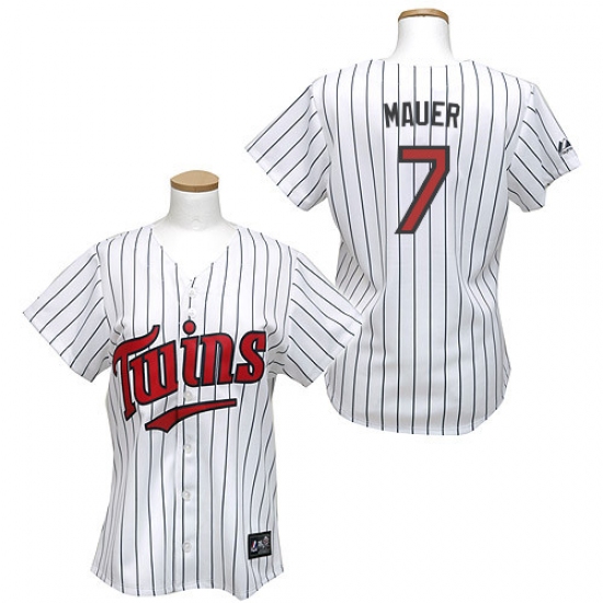 Women's Majestic Minnesota Twins #7 Joe Mauer Authentic White/Blue Strip MLB Jersey