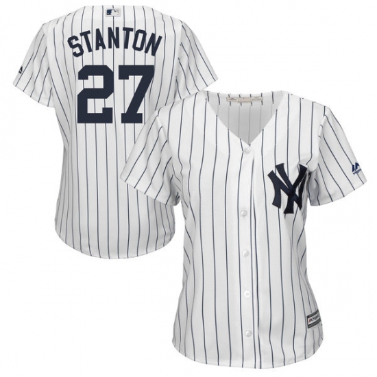 Home>MLB>New York Yankees>Giancarlo Stanton>Women's Majestic New York Yankees #27 Giancarlo Stanton Replica White Home MLB Jersey