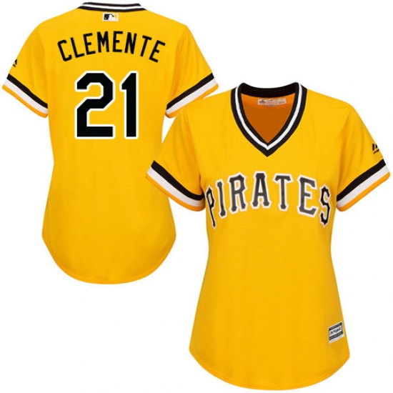 Women's Majestic Pittsburgh Pirates #21 Roberto Clemente Replica Gold Alternate Cool Base MLB Jersey