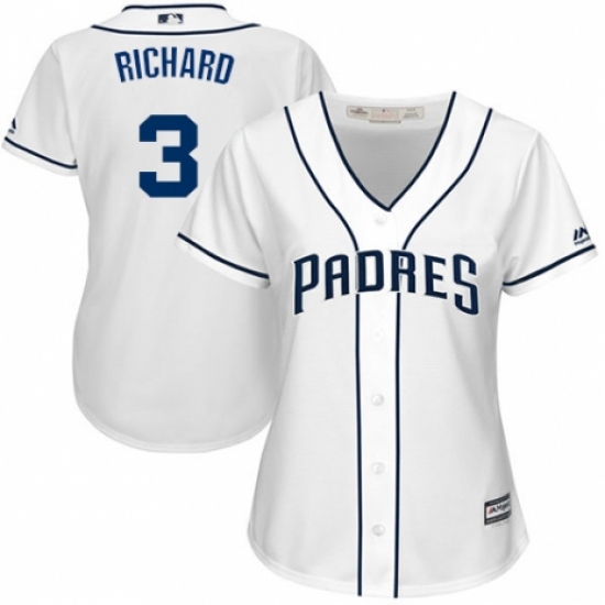 >Women's Majestic San Diego Padres #3 Clayton Richard Authentic White Home Cool Base MLB Jersey