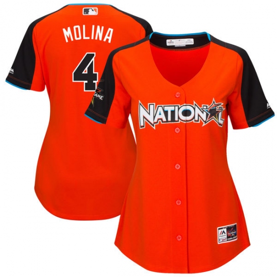 Women's Majestic St. Louis Cardinals #4 Yadier Molina Replica Orange National League 2017 MLB All-Star MLB Jersey