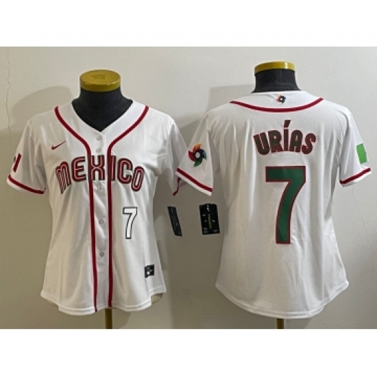 Women's Mexico Baseball #7 Julio Urias Number 2023 White World Classic Stitched Jersey6