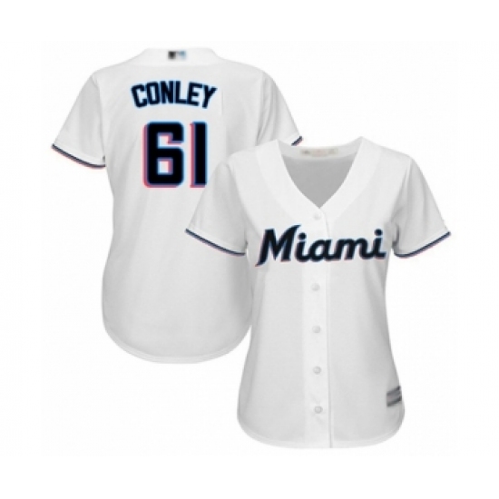 Women's Miami Marlins #61 Adam Conley Authentic White Home Cool Base Baseball Player Jersey