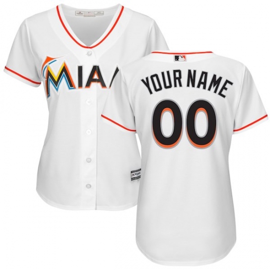 Women's Miami Marlins Majestic White Home Cool Base Custom Jersey
