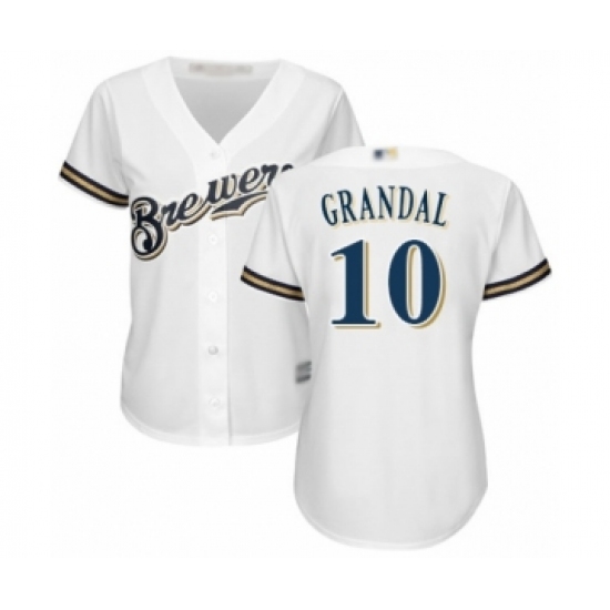 Women's Milwaukee Brewers #10 Yasmani Grandal Authentic White Alternate Cool Base Baseball Jersey