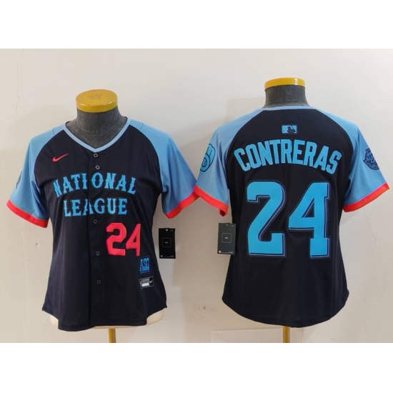 >Women's Milwaukee Brewers #24 William Contreras Navy 2024 All Star Limited Stitched Jerseys