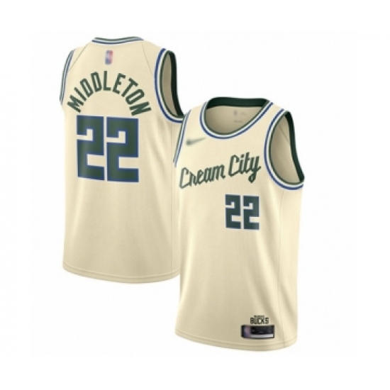 Women's Milwaukee Bucks #22 Khris Middleton Swingman Cream Basketball Jersey - 2019 20 City Edition