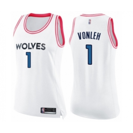 Women's Minnesota Timberwolves #1 Noah Vonleh Swingman White Pink Fashion Basketball Jersey