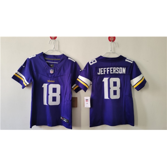>Women's Minnesota Vikings #18 Justin Jefferson Purple F.U.S.E. Vapor Untouchable Limited Football Stitched Jersey