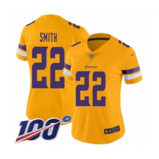 >Women's Minnesota Vikings #22 Harrison Smith Limited Gold Inverted Legend 100th Season Football Jersey