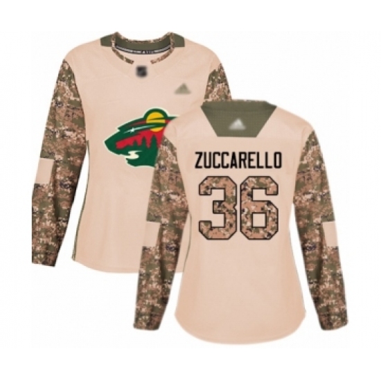 >Women's Minnesota Wild #36 Mats Zuccarello Authentic Camo Veterans Day Practice Hockey Jersey