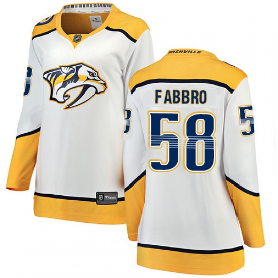 Women's Nashville Predators #58 Dante Fabbro Fanatics Branded White Away Breakaway NHL Jersey
