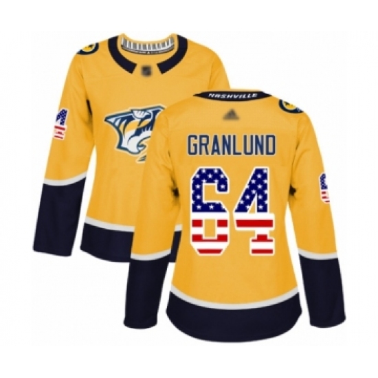 Women's Nashville Predators #64 Mikael Granlund Authentic Gold USA Flag Fashion Hockey Jersey