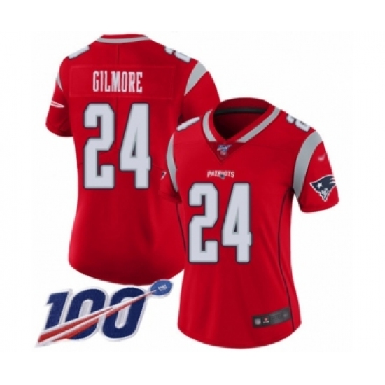 >Women's New England Patriots #24 Stephon Gilmore Limited Red Inverted Legend 100th Season Football Jersey
