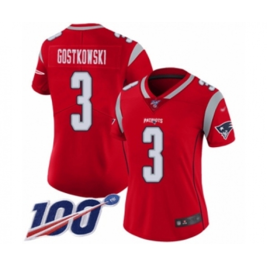 >Women's New England Patriots #3 Stephen Gostkowski Limited Red Inverted Legend 100th Season Football Jersey