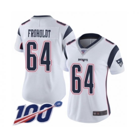 >Women's New England Patriots #64 Hjalte Froholdt White Vapor Untouchable Limited Player 100th Season Football Jersey