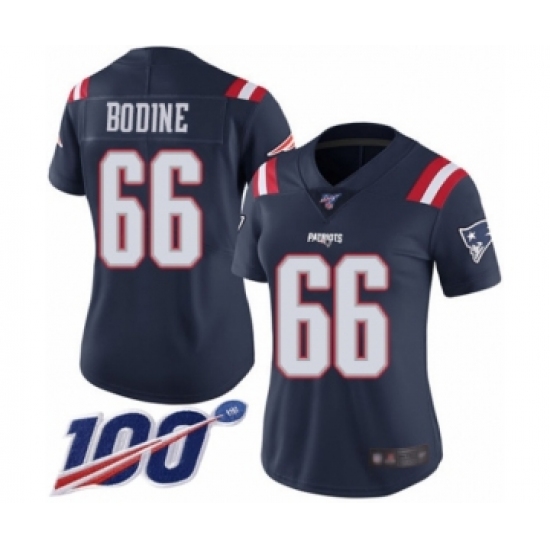 >Women's New England Patriots #66 Russell Bodine Limited Navy Blue Rush Vapor Untouchable 100th Season Football Jersey