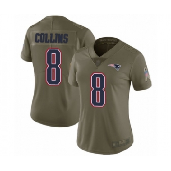 >Women's New England Patriots #8 Jamie Collins Limited Olive 2017 Salute to Service Football Jersey