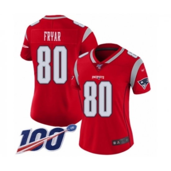 >Women's New England Patriots #80 Irving Fryar Limited Red Inverted Legend 100th Season Football Jersey