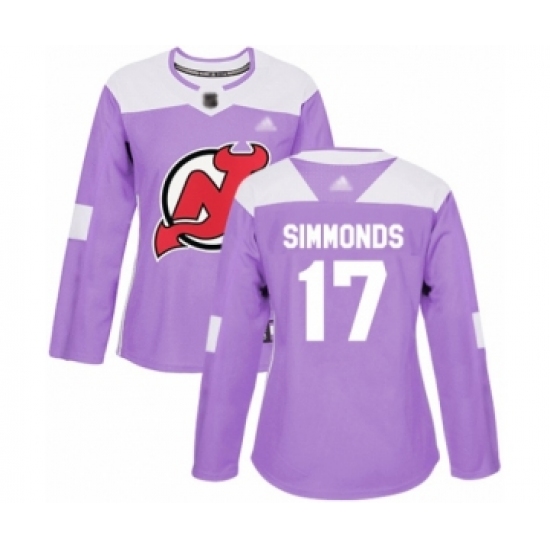 >Women's New Jersey Devils #17 Wayne Simmonds Authentic Purple Fights Cancer Practice Hockey Jersey