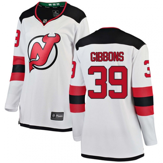 Home>NHL>New Devils Jersey>Brian Gibbons>Women's New Jersey Devils #39 Brian Gibbons Fanatics Branded White Away Breakaway NHL Jersey