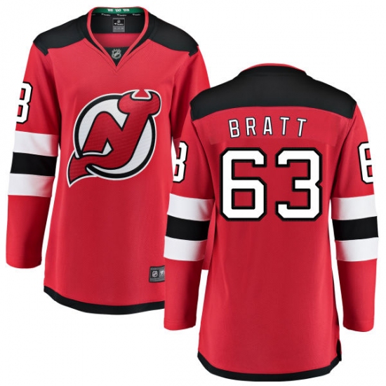 Home>NHL>New Devils Jersey>Jesper Bratt>Women's New Jersey Devils #63 Jesper Bratt Fanatics Branded Red Home Breakaway NHL Jersey