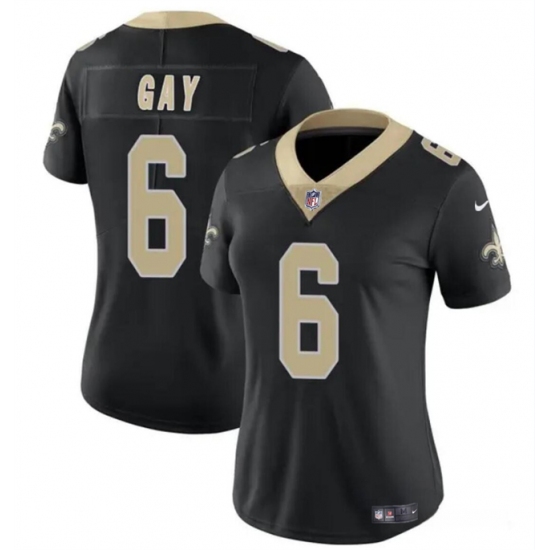 Women's New Orleans Saints #6 Willie Gay Black Vapor Football Stitched Game Jersey(Run Small)