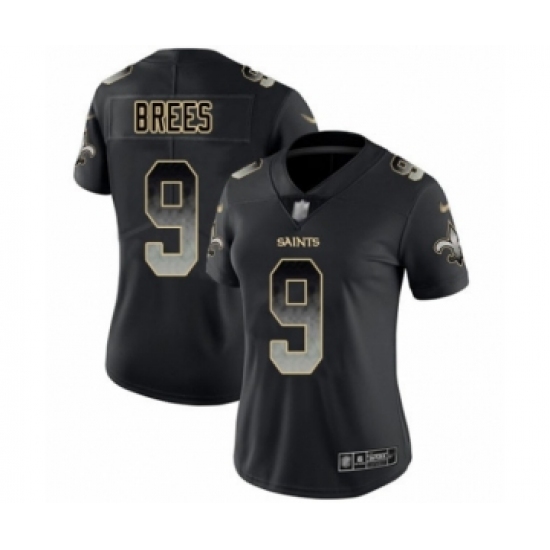 >Women's New Orleans Saints #9 Drew Brees Limited Black Smoke Fashion Football Jersey