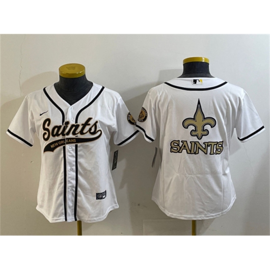 Women's New Orleans Saints White Team Big Logo With Cool Base Stitched Baseball Jersey(Run Small)