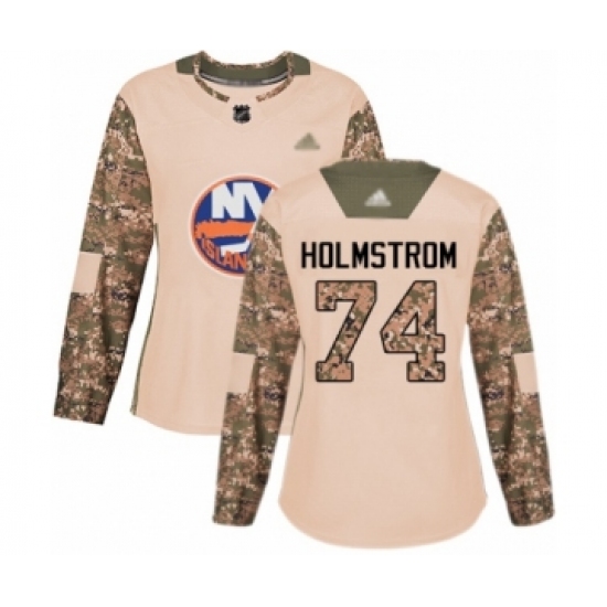 >Women's New York Islanders #74 Simon Holmstrom Authentic Camo Veterans Day Practice Hockey Jersey