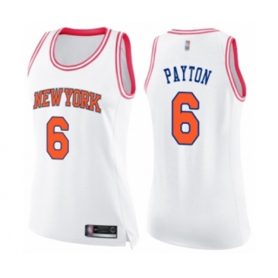 >Women's New York Knicks #6 Elfrid Payton Swingman White Pink Fashion Basketball Jerse