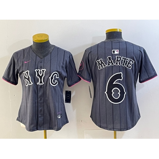 >Women's New York Mets #6 Starling Marte Gray 2024 City Connect Cool Base Stitched Jersey