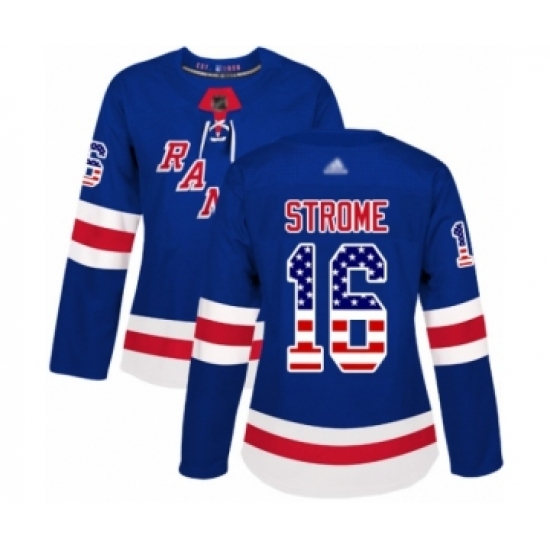 >Women's New York Rangers #16 Ryan Strome Authentic Royal Blue USA Flag Fashion Hockey Jersey