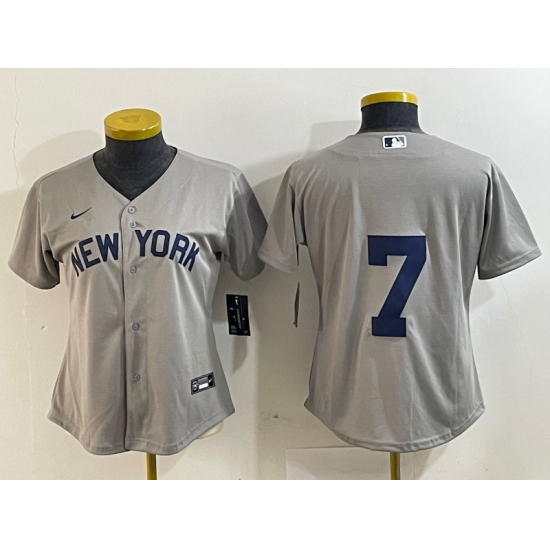 >Women's New York Yankees #7 Mickey Mantle 2021 Grey Field of Dreams Cool Base Stitched Jersey