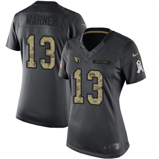 Home>NFL>Arizona Cardinals>Kurt Warner>Women's Nike Arizona Cardinals #13 Kurt Warner Limited Black 2016 Salute to Service NFL Jersey