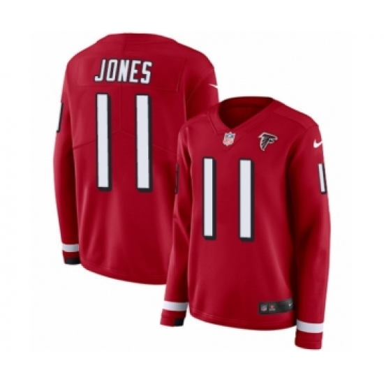 >Women's Nike Atlanta Falcons #11 Julio Jones Limited Red Therma Long Sleeve NFL Jersey
