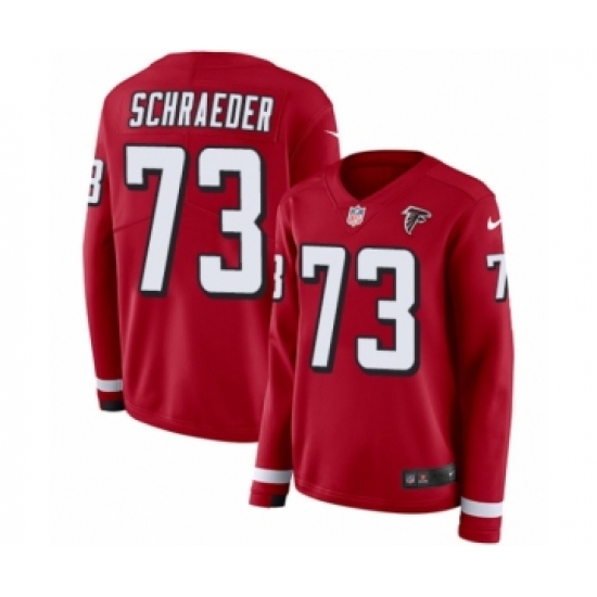 >Women's Nike Atlanta Falcons #73 Ryan Schraeder Limited Red Therma Long Sleeve NFL Jersey