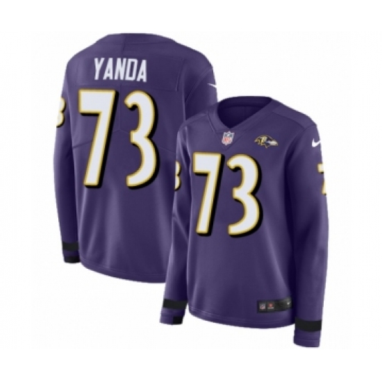 Women's Nike Baltimore Ravens #73 Marshal Yanda Limited Purple Therma Long Sleeve NFL Jersey