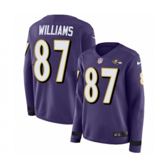 Women's Nike Baltimore Ravens #87 Maxx Williams Limited Purple Therma Long Sleeve NFL Jersey