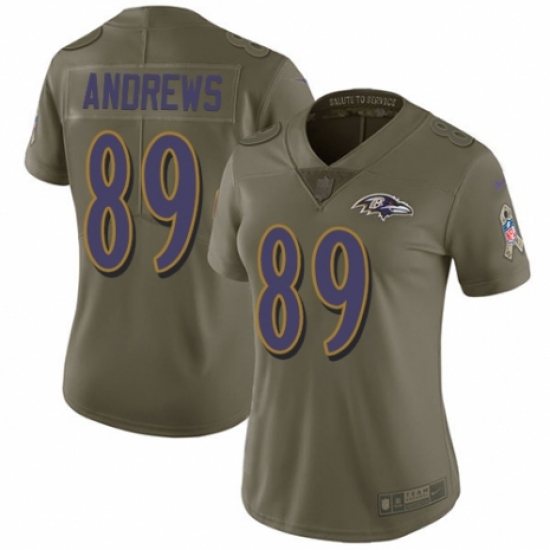 >Women's Nike Baltimore Ravens #89 Mark Andrews Limited Olive 2017 Salute to Service NFL Jersey