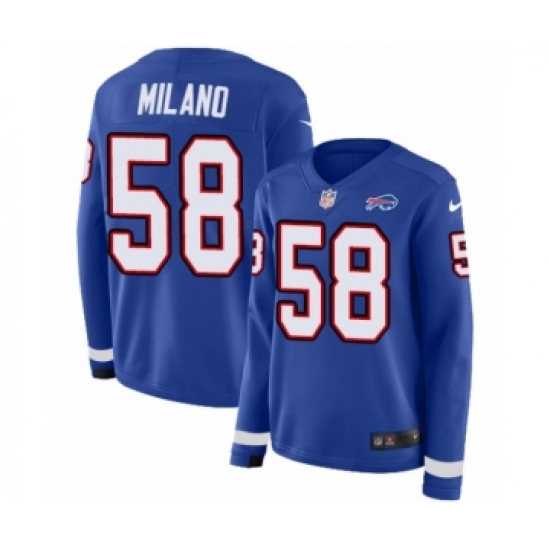Women's Nike Buffalo Bills #58 Matt Milano Limited Royal Blue Therma Long Sleeve NFL Jersey