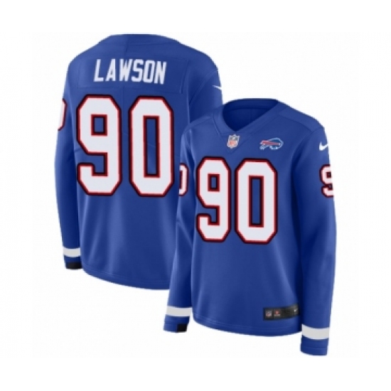 Women's Nike Buffalo Bills #90 Shaq Lawson Limited Royal Blue Therma Long Sleeve NFL Jersey