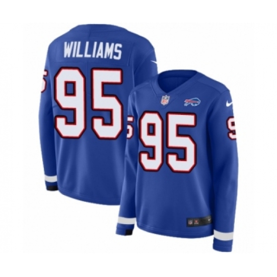 >Women's Nike Buffalo Bills #95 Kyle Williams Limited Royal Blue Therma Long Sleeve NFL Jersey