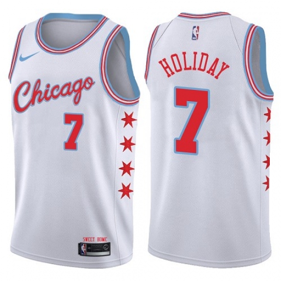 Home>NBA>Chicago Bulls>Justin Holiday>Women's Nike Chicago Bulls #7 Justin Holiday Swingman White NBA Jersey - City Edition