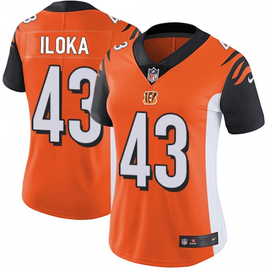 Home>NFL>Cincinnati Bengals>George Iloka>Women's Nike Cincinnati Bengals #43 George Iloka Vapor Untouchable Limited Orange Alternate NFL Jersey