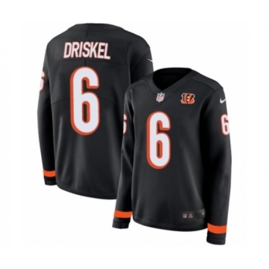 >Women's Nike Cincinnati Bengals #6 Jeff Driskel Limited Black Therma Long Sleeve NFL Jersey