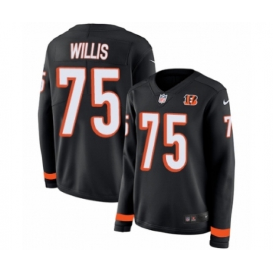 >Women's Nike Cincinnati Bengals #75 Jordan Willis Limited Black Therma Long Sleeve NFL Jersey