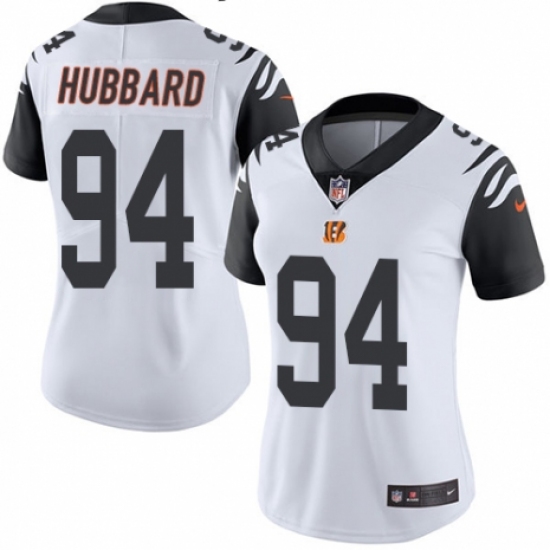>Women's Nike Cincinnati Bengals #94 Sam Hubbard Limited White Rush Vapor Untouchable NFL Jersey