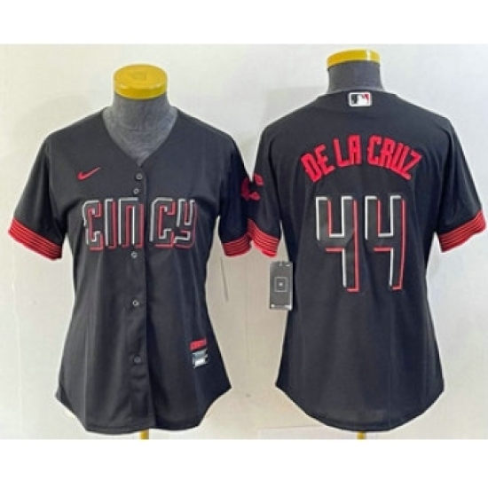 >Women's Nike Cincinnati Reds #44 Elly De La Cruz Black 2023 City Connect Cool Base Stitched Baseball Jersey1