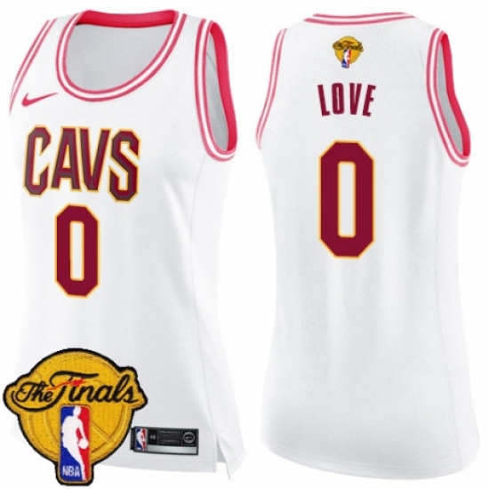 Women's Nike Cleveland Cavaliers #0 Kevin Love Swingman White/Pink Fashion 2018 NBA Finals Bound NBA Jersey